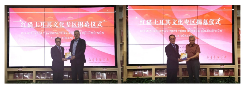 新华书店与红猫书店主要负责人共同为“红猫土耳其文化专区”揭幕,未来,双方将持续深化合作,以书为媒,开拓多元文化交流场景,为两国文化交流注入全新活力,让中土友好情谊薪火相传。