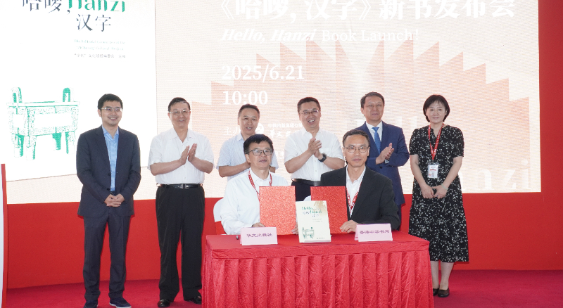 6月21日,由华文出版社主办的《哈啰,汉字》(第一册)新书发布会暨版权签约仪式在北京国际图书博览会中国出版集团活动区举行。本次活动聚焦国际中文教育创新与汉字文化推广,吸引了来自出版界、学术界、国际教育机构的众多嘉宾参与。中国出版集团有限公司党组成员、中国出版传媒股份有限公司总经理茅院生,全国政协委员、国际儒联副会长李岩,华文出版社社长、总编辑余佐赞,中华书局(香港)有限公司董事、总经理、总编辑周建华,华文出版社副总经理董易,以及《哈啰,汉字》编委会主任李杨,《哈啰,汉字》编委会副主任李根信,《哈啰,汉字》编委会副主任、集思未来首席执行官颜盛等领导、嘉宾出席活动。