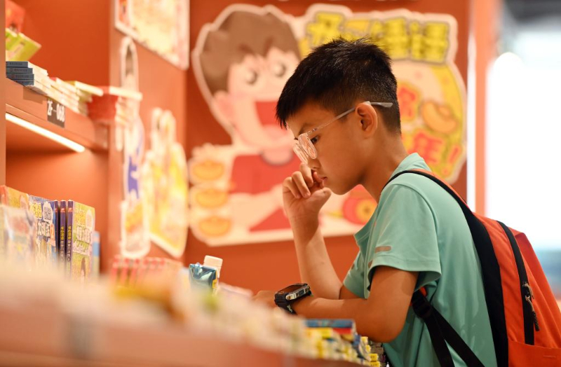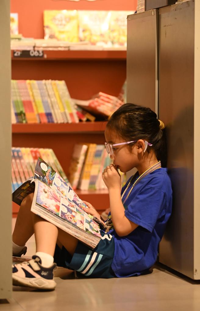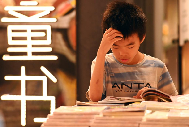 7月4日,在南宁市一家新华书店,一名学生在阅读书籍。