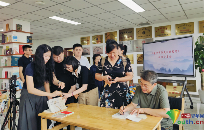 班永吉为热心读者签名赠书。张伊供图