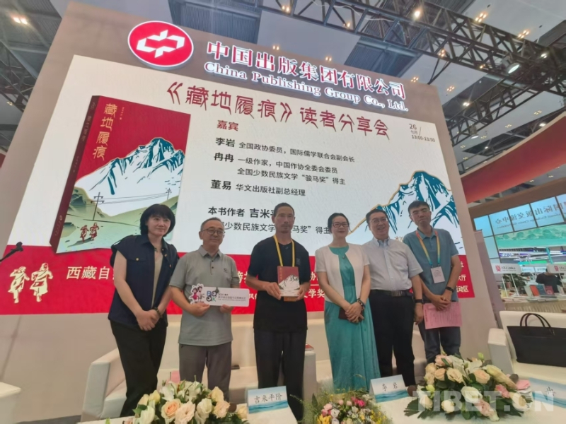 7月26日,“《藏地履痕》读者分享会”在重庆博览中心第33届全国图书交易博览会上举办。国际儒学联合会副会长李岩,一级作家、中国作协全委会委员、全国少数民族文学创作骏马奖得主冉冉,华文出版社副总经理董易,和《藏地履痕》一书作者吉米平阶共同出席,围绕民族文学的创作与繁荣、非物质文化遗产保护等话题与读者做了分享。