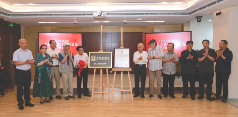 会上,中国出版集团董事长黄志坚为8位评审专家委员会成员颁发聘书,会议正式发布了“中华老字号”品牌认证与“人美大红袍”注册商标,为品牌规范发展筑牢根基。正如人民美术出版社社长李红强在致辞中所点明的:以商标注册为起点,延续经典品质,拓展艺术门类,让文化品牌在新时代焕发新活力。