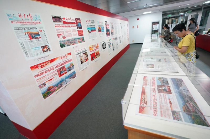 北京日报客户端记者 方非摄从1952年10月1日《北京日报》创刊号,到2008年8月9日《北京日报》关于第二十九届夏季奥林匹克运动会开幕的报道,再到2021年7月2日《北京日报》庆祝中国共产党成立100周年的报道,再到2025年9月4日《北京日报》纪念中国人民抗日战争暨世界反法西斯战争胜利80周年报道……在现场展出的背景板呈现出记录历史瞬间的精彩版面。
