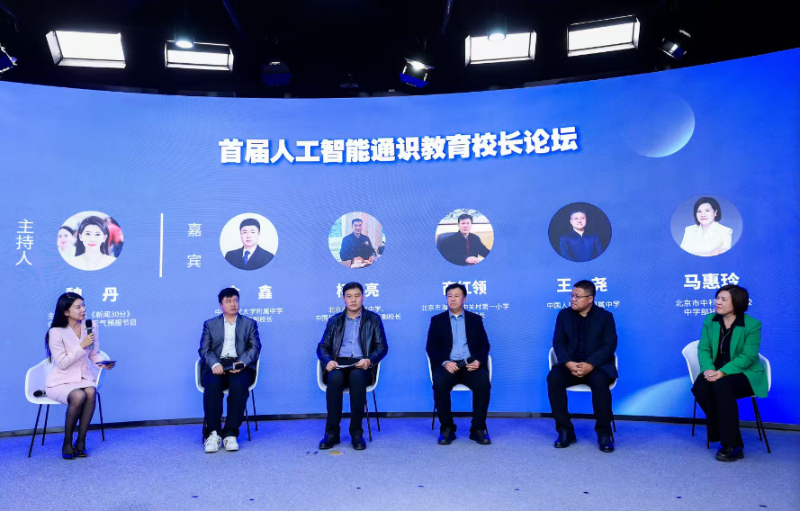 圆桌对话环节,中关村第一小学教育集团校长商红岭,中国人民大学附属中学分校副校长王尧,中国人民大学附属中学丰台学校副校长金鑫,北京市中关村中学、中国科学院中关村学校副校长杨亮,中科启元学校中学部执行校长马惠玲,围绕AI通识教育的核心价值、课程设计、师资培养、教育公平及效果评价等议题,分享了从“价值定位”到“课程设计”的全链条实践智慧,为解决“教师不懂AI”“资源分配不均”等现实难题提供了宝贵方案。