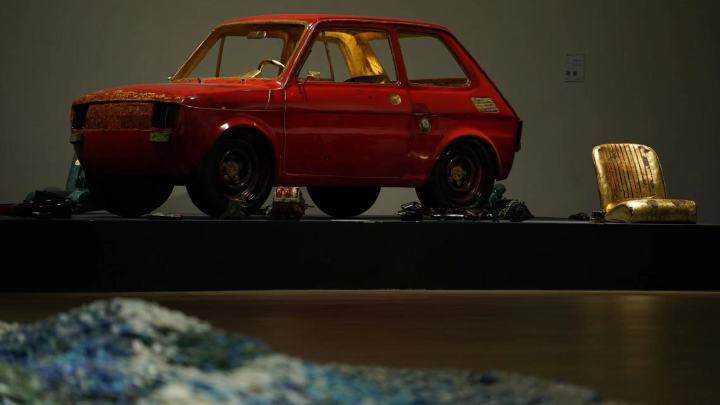 《脱胎漆车计划》,大漆、夏布、棉布、瓦灰、金箔、铜箔、矿物颜料,295×130×140cm,2021年