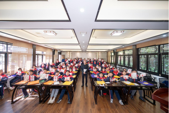 沈梓馨拿到了《红楼梦》,毛戈乐、庞宇轩和陶华旭分别收到了《中国文化精神课》和《风啊吹向我们》《故园——毛泽东与韶山的故事》……韶山市韶山学校小学部孔子学堂里充满孩子们的喜悦。