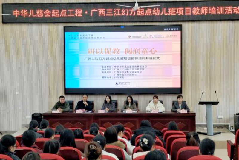 11月22日至24日,由中华少年儿童慈善救助基金会主办,广西三江侗族自治县教育局协办,广西海丝文化交流基金会、广西师范大学出版社承办的“研以促教 阅润童心——构建师幼共成长的教育生态”教师培训、特色阅读及入园指导系列活动在三江侗族自治县举行。