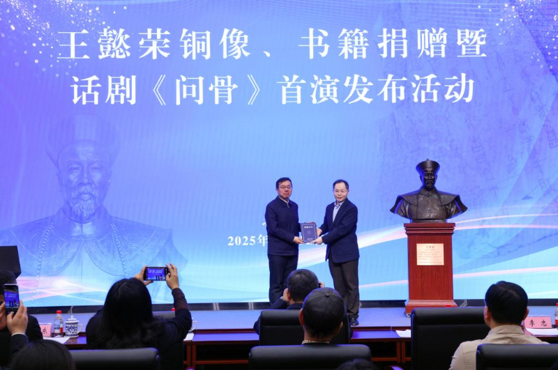 12月12日,王懿荣铜像、书籍捐赠暨话剧《问骨》首演发布活动在国家图书馆举办。
