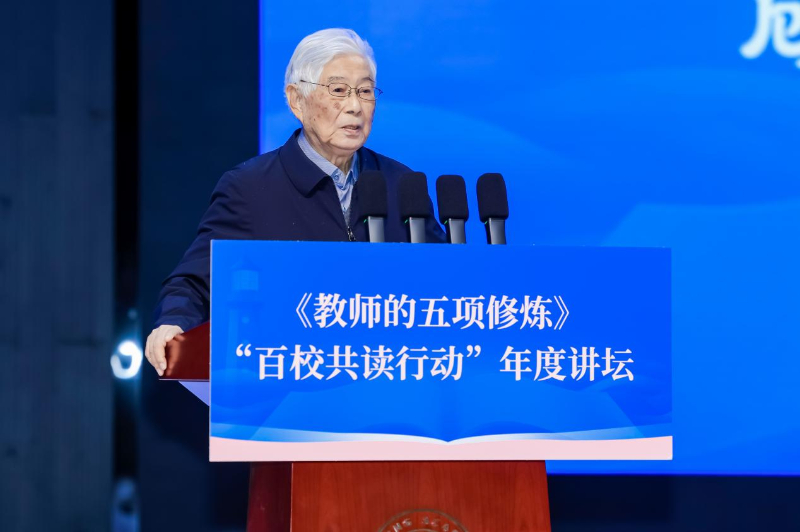 在“先生赠言·寄未来”环节,顾明远为全国教师送上深情寄语。他分享了本书的写作背景,当论及“意愿”时,顾明远认为自己正是从学生的成长中获得了最真实的幸福与成就感;当论及“收获”时,顾明远表示自己“仍在修炼途中”,以此勉励广大教师不畏失败、从遗憾中汲取前进动力。顾明远以“学习学习再学习、实践实践再实践”与全体教师共勉,祝愿大家都能成长为优秀教师乃至教育家,并致以温暖的新年祝福。