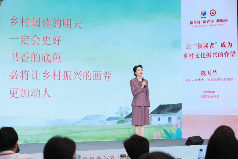 “以读润心”篇章,江苏“外卖诗人”王计兵以《赶时间的人,把乡土写进诗里》为题,阐述阅读如何让普通劳动者找到诗意栖居的精神力量。情景剧《直播间话阅读》再现了安徽宿州灵璧县虞姬镇团委书记孙雅馨,借助直播化解乡邻矛盾、宣讲移风易俗的创新做法。贵州榕江的侗族织娘、“村超牛”设计者赖蕾则分享自己在田埂上建立移动书屋、在阅读中传承非遗的故事。江西寻乌的阅读推广人代表通过情景朗诵为当地阅读画像,乡村教师邝美兰说:“阅读早已融入寻乌乡村的日常,改变着乡亲们的生活,润泽着大家的心灵。每个读书的人,都是乡村的星光。”
