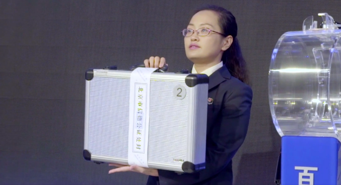 球箱取出来之后,公证员首先要查看球箱密封情况,查看封条的密封时间、印章、签字等内容,检查无误后将正选球箱封条拆除,打开球箱,检查每一颗摇奖球的情况,同时监督装球的工作,确认装球顺序、位置等。这个环节,有点像我们参加考试的时候监考老师向考生展示试卷的密封情况以及启封试卷的过程。备选球箱也必须由公证员全程保管,随时做好应对突发情况的准备。