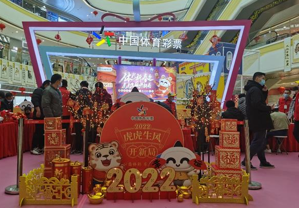 “体彩新春季,虎虎生风开新局!”热闹喜庆的体彩活动区域前,精美的体彩顶呱刮虎年生肖票成为现场的“明星票”。