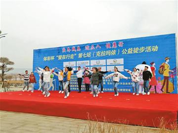 3月6日,体彩杯“爱在行走”第七站公益徒步活动在克拉玛依市克拉玛依区金龙湖景区启动。启动活动中,设置公益徒步10公里,共有600余人参加。