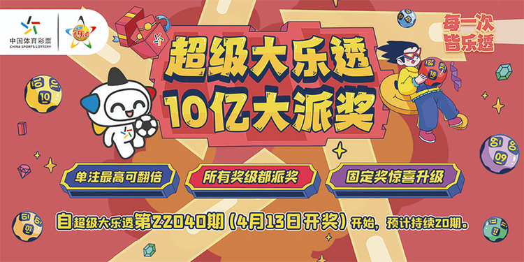 超级大乐透10亿元大派奖,所有奖级都派奖,单注最高可翻倍,固定奖惊喜升级,精彩即将启幕!