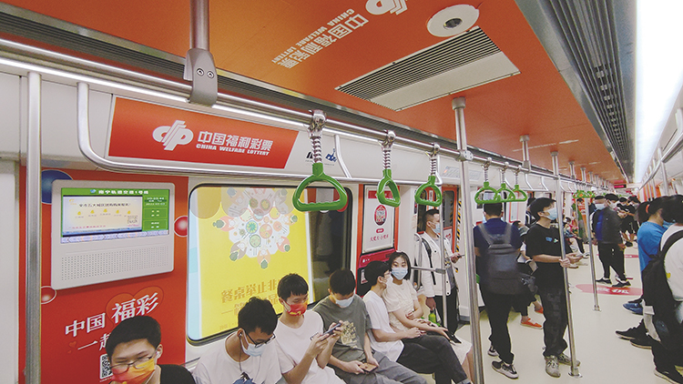 走进地铁1号线万象城站、朝阳站,“欢迎乘坐福彩公益号”的欢迎语迎面而来。在广西福彩地铁主题列车上,每节车厢里都充满了福彩元素,每个车厢的车门如同一台立体彩票机,打印出一张张“中国福彩一起造福”的彩票。在这些彩票上,用手绘的形式体现出了福利彩票“扶老、助残、救孤、济困”的发行宗旨,让乘客透过这一张张彩票看到中国福彩为社会公益事业做出的坚持与努力,展现福利彩票在为发展社会福利、社会保障和公益事业,救助特殊困难群体,促进社会和谐发展发挥的重要作用。