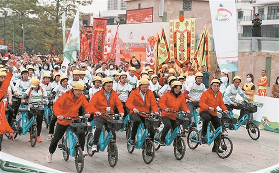 2月3日,2023年粤港澳大湾区系列赛启动仪式在广东省佛山市南海区丹灶镇仙湖广场举行。在活动现场,自行车骑游、徒步活动、龙狮表演赛等项目轮番上演,全民健身与岭南文化擦出精彩火花。