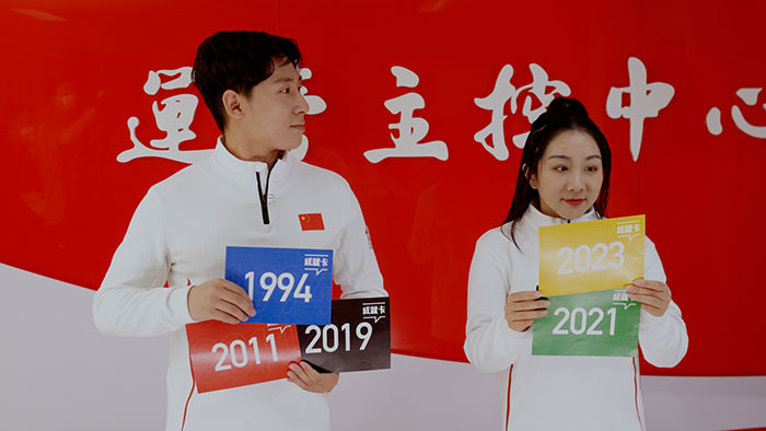 首战告捷后一群人来到主舞台,两位运动员各自为战,寻找藏于现场的九张题卡并回答卡上的问题。隋文静开局就寻获三张题卡并回答正确,而韩聪第一张便找到“惩罚卡”。最终,隋文静获胜并赢得第二关的优先选择权,她近距离观看并启动了体彩大乐透摇奖机“维纳斯”。过程中,国家体彩中心概率游戏管理处副处长宫健也分享了两个知识点:“维纳斯”采用吹气式搅拌法,是目前世界上公认最公平的摇奖方式之一;每天摇奖前会在公证人员地监督下会对摇奖机进行两次试运行,过程中会使用大小、重量与正式摇奖球相同的试机球充当“陪练员”,以确保摇奖机的正常运行。