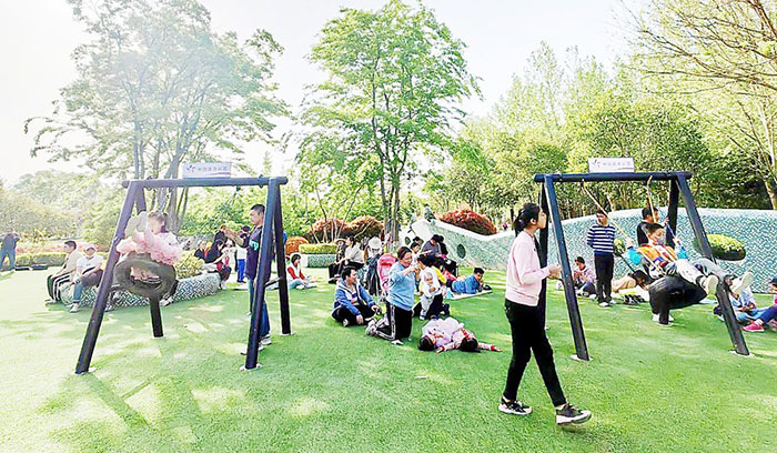 四月微风,花开正盛。中国体育彩票健康主题公园内,花草相映,风和日暖,行走其中,一片生机盎然,春光无限,吸引了众多市民前来打卡游玩。