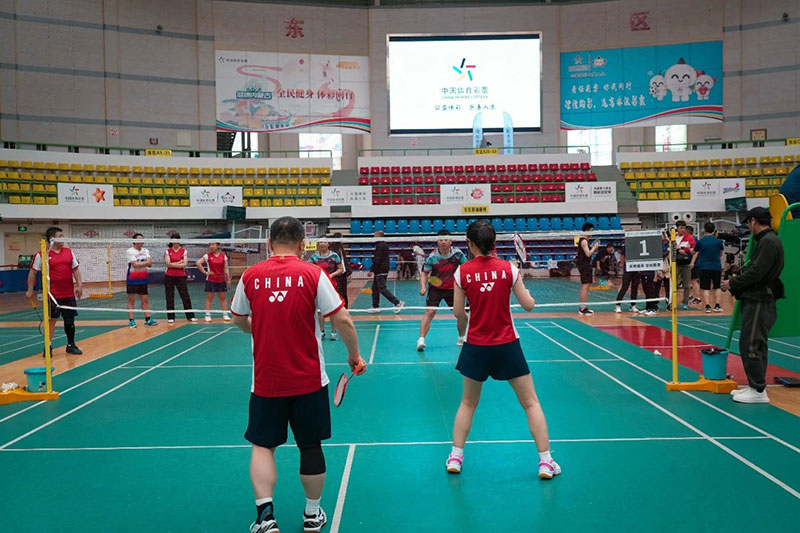 (兴安盟体育中心,正在如火如荼地进行羽毛球友谊赛)