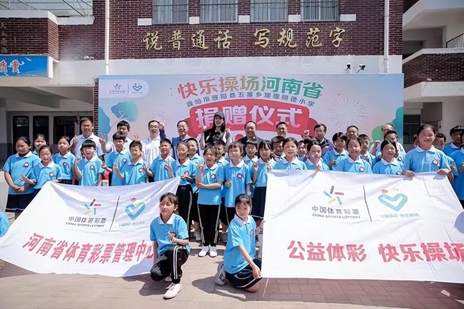 “公益体彩 快乐操场”主题公益活动,是国家体育总局体育彩票管理中心2012年在全国发起的,为农村偏远地区体育器材匮乏的中小学,捐赠体育器材和体育设施的公益项目。据了解,今年也是“公益体彩 快乐操场”来到河南的第11年。在过去的10年,通过“公益体彩 快乐操场”活动,河南体彩中心已累计投入445万元资金,为271所乡村中小学送去了适合体育教学的器材和设施,惠及师生达到8.2万人,共为其中20所小学送去了长达一个学期的体育支教,为助力体教融合、助力乡村振兴做出了贡献。今年,河南体彩中心将继续为30所乡村小学提供体育器材、设施以及体育教学。