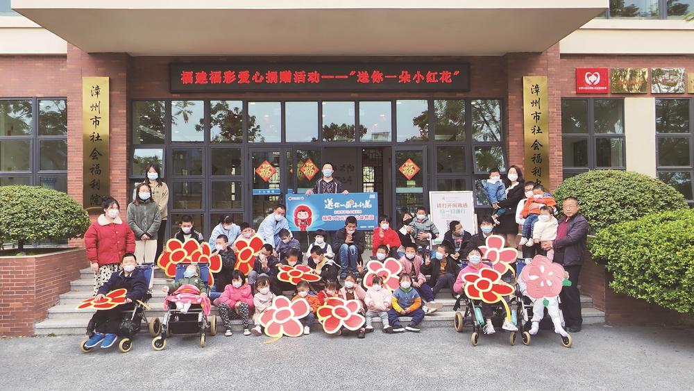 在漳州市社会福利中心,福建福彩开展“送你一朵小红花”爱心捐赠活动。