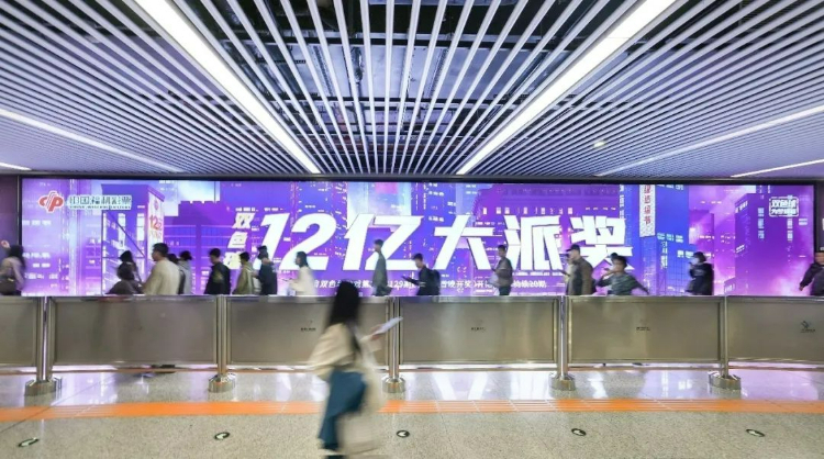 南宁地铁金湖广场站换乘通道的巨幅派奖宣传