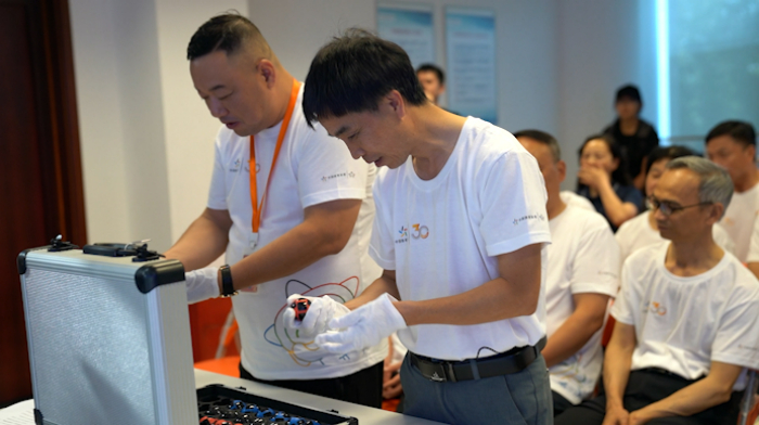 见证团首先参观了体彩乐透数字型游戏摇奖灾备场地,这里是在遭遇不可抗力(如火灾、摇奖场地损毁、摇奖设备及备用设备损坏等),导致无法在正式摇奖场地开展摇奖工作的情况下,而启用的备用摇奖场地。见证团成员从检验、触摸试机球,到体验公证员装球,最后启动灾备场地摇奖机,模拟体验了摇奖全流程。大家纷纷表示:“摇奖球是实心材质但很轻,和想象中的不太一样。”模拟公证员装球的见证团成员说:“装球看似简单,但实际却很紧张,因为要注意球的颜色顺序,还要避免掉落到地上。”亲自按下摇奖机启动按钮的见证团成员说:“启动摇奖机,体验模拟摇奖,我感觉既激动又紧张。”