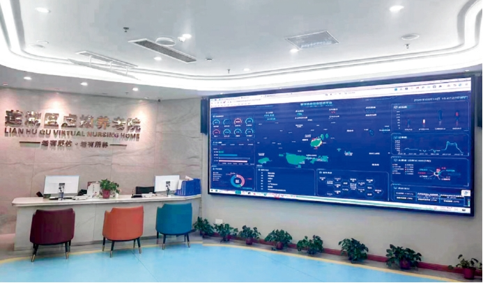 “虚拟养老院”的正常运转有赖于莲湖智慧养老管理平台的支撑。走进莲湖区“虚拟养老院”服务中心的接待大厅,一块写着“莲湖智慧养老管理平台主页面”的蓝色大屏映入眼帘。通过大屏可以查看养老服务项目、正在享受养老服务的老年人的相关信息。此外,莲湖智慧养老管理平台还详细记录了已注册老年人的健康状况、所在位置、护理需求、餐饮偏好等信息。