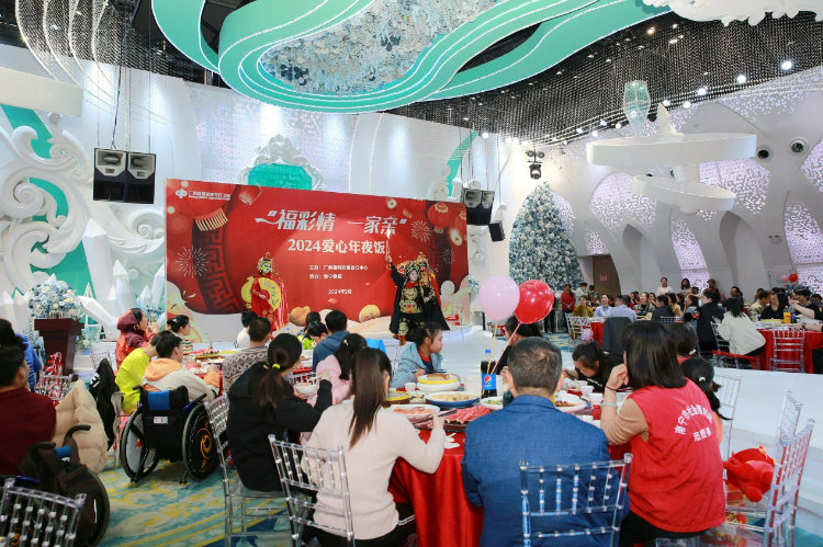 在温馨祥和的氛围里,“福彩情 一家亲” 2024 爱心年夜饭公益活动温情开席,吸引了来自荣获国家级及自治区级 “民族团结进步示范社区” 的工作人员、积极投身社区和谐共建的各民族居民、社区困难群众,以及南宁市社会福利院的老人、孤儿、残疾人士和工作人员等约 300 人齐聚一堂,共享团圆晚宴,共迎甲辰龙年新春。这项由广西福彩中心携手南宁晚报联合发起的暖心关怀活动,已走过 8 个春秋,岁岁传递温情。