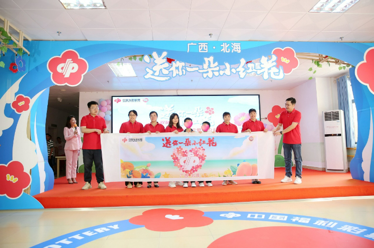 时间来到2024年9月13日,广西福彩中心携手北海市民政局,以及社会各界的爱心人士、投注站业主代表共同走进北海市社会福利院,暖心开启2024年“送你一朵小红花”爱心公益行动。双色球购彩者们送出的一朵朵小红花,汇聚成爱的心愿实现单,通过活动传递到了孩子们的手中。此次活动,中福彩中心与广西福彩中心向北海社会福利院捐赠儿童用品、文体教具、洗护日用和医疗复健器材等总价值4万多元的公益物资。