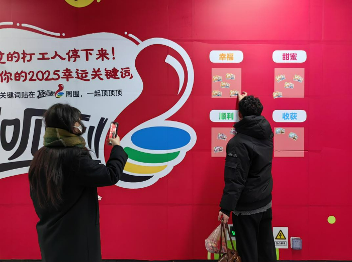 在情感互动方面,新疆体彩以“心愿墙+乐小星贴纸”为核心互动设计,触动参与者的情感心弦。8种不同寓意的乐小星祝福贴纸,对应着人们不同的新年期许,参与者亲手将承载心愿的贴纸贴在心愿墙上,这一充满仪式感的行为,不仅让冰冷的通勤空间瞬间充满温情,更成为体彩与乘客之间情感交流的桥梁,引发情感共鸣。