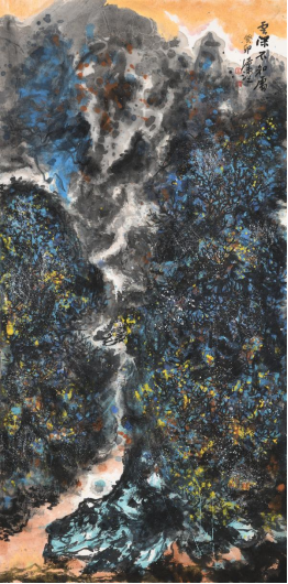 在笔墨语言的运用中,他师承传统又能以自己的感悟和理解赋予其作品以时代精神,成功的融入现代的构成和丰富的色彩,为其作品注入了生机和活力。他善于用墨,正如他对黑白有着诗意的理解,他以精墨大写,直取山川灵魂,正是他能娴熟地运用这两种特质,所以他的作品既有山辉川媚之姿,又能有蕴玉藏珠之富,呈示出厚重磅礴的气势。他擅于放笔抒怀,淋漓尽致地展现东方水墨的无穷魅力,形成富涵文人气象的笔墨语言特色。