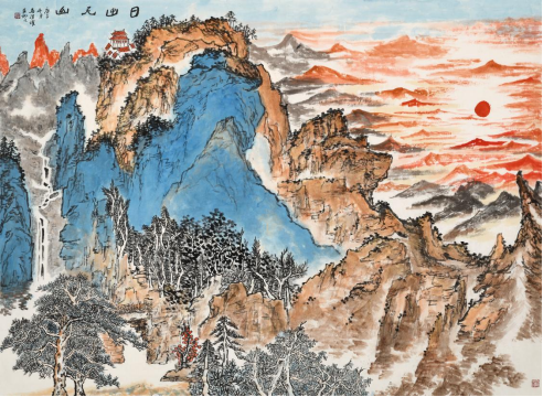赏读马汉跃的近期作品,如《青山为邻翠连天》《日出尼山》《九鼎莲花》等均能传达出一种雄浑朴拙,苍润、古雅的气息,既有南派山水的舒展、空灵,又有北派山水的刚猛、豪放;既有水墨交融的滋润,又有枯笔飞白的刚劲;既有泼墨挥洒的厚重,又有细线勾勒的灵动。他以自己独特的感悟抒写着笔墨的苍润之美,在创作实践中把南北不同的画风进行了融合、互动,取长补短演绎出手法多样、风格鲜明的现代山水新面貌。