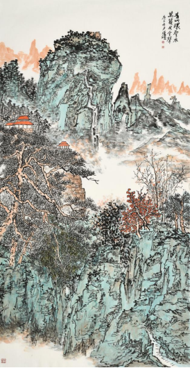 在马汉跃的作品中,画家融主观情感、性灵于客观的景物之中,看似平淡又可见奇险,山峦重叠,开合有序,结构严谨,沉稳又富于变化,设色古雅沉着,营造出一种纵横恣肆、气韵高古的意境。他以今人之心写古人之意,能达到这种境界实属难得。