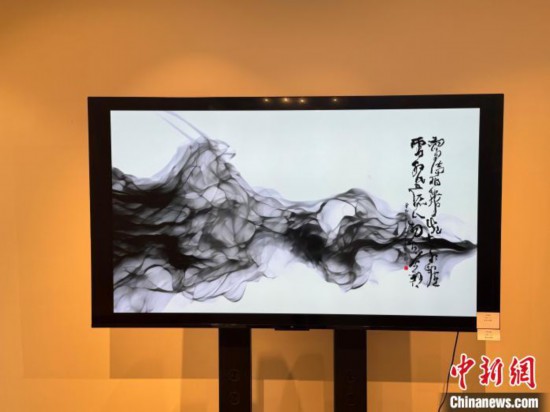 4月14日,数字艺术家、四川诗书画院顾问一山的数字艺术视频《AI水墨》在太原文庙展出。杨静 摄