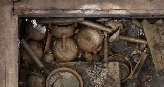 这座大型楚国高等级墓葬随葬品丰富程度亦是惊人。目前,考古工作者已提取漆木器、青铜器等文物超千件,包含青铜礼器、生活用器、漆木器、乐器、俑等珍贵文物。其中漆木器无论数量还是种类都是空前的。东Ⅰ室南端放置的大鼎粗测口径超过88厘米,比已知最大的楚大鼎(铸客大鼎)更大,彰显了墓主人的高贵身份。