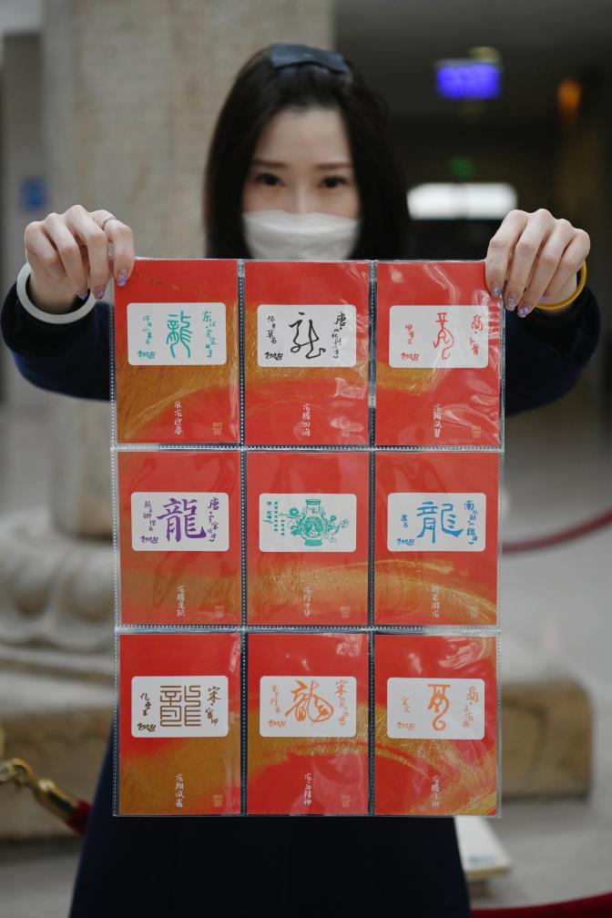 “卡片上留的空白处需要填什么呢?”在仔细询问工作人员后,柴雨桐了解到,将这些空白填满,需要在博物馆参观过程中,寻找馆内9个精美印章,包括从商代到宋代8种不同字体的“龙”和1件含有龙纹饰的文物印章。