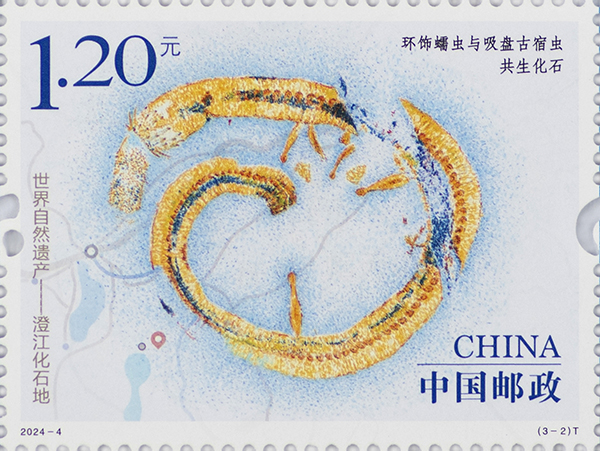 该特种邮票1套3枚,图案名称为“中华微网虫化石”“环饰蠕虫与吸盘古宿虫共生化石”“延长抚仙湖虫化石”,全套邮票面值3.60元,邮票计划发行588万套。