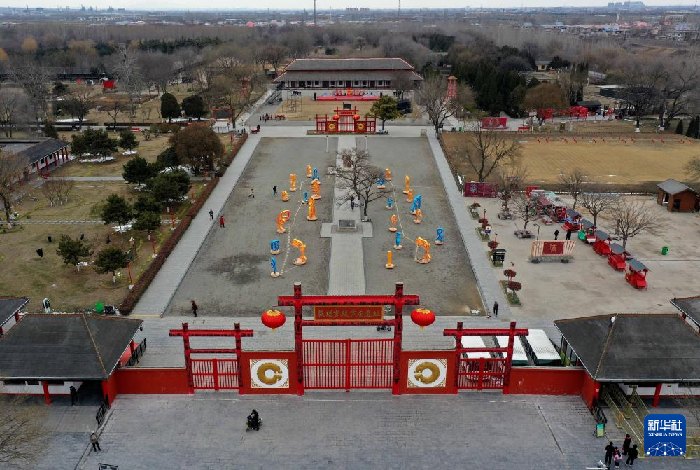 这是2024年2月23日拍摄的河南安阳殷墟宫殿宗庙遗址(无人机照片)。