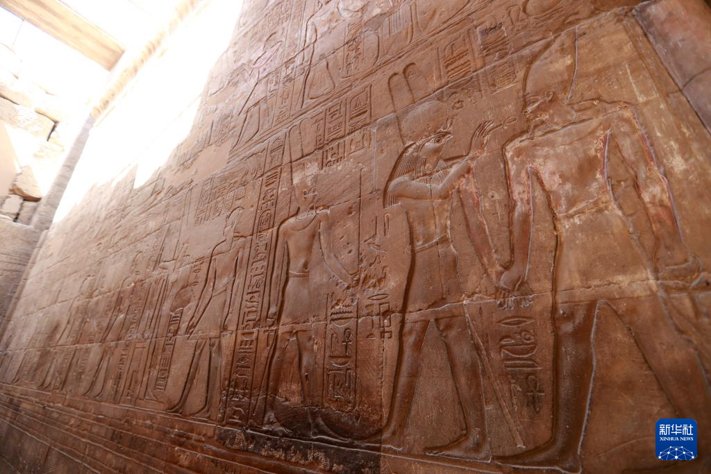 这是2024年4月9日在埃及卢克索神庙拍摄的浮雕壁画。