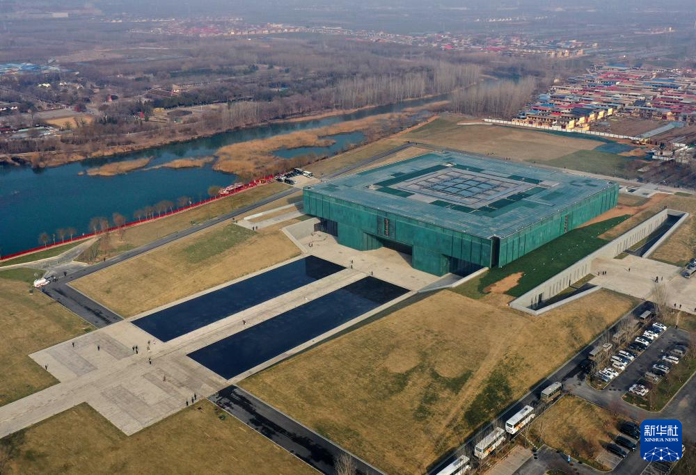 这是2024年2月26日拍摄的位于河南省安阳市的殷墟博物馆新馆(无人机照片)。
