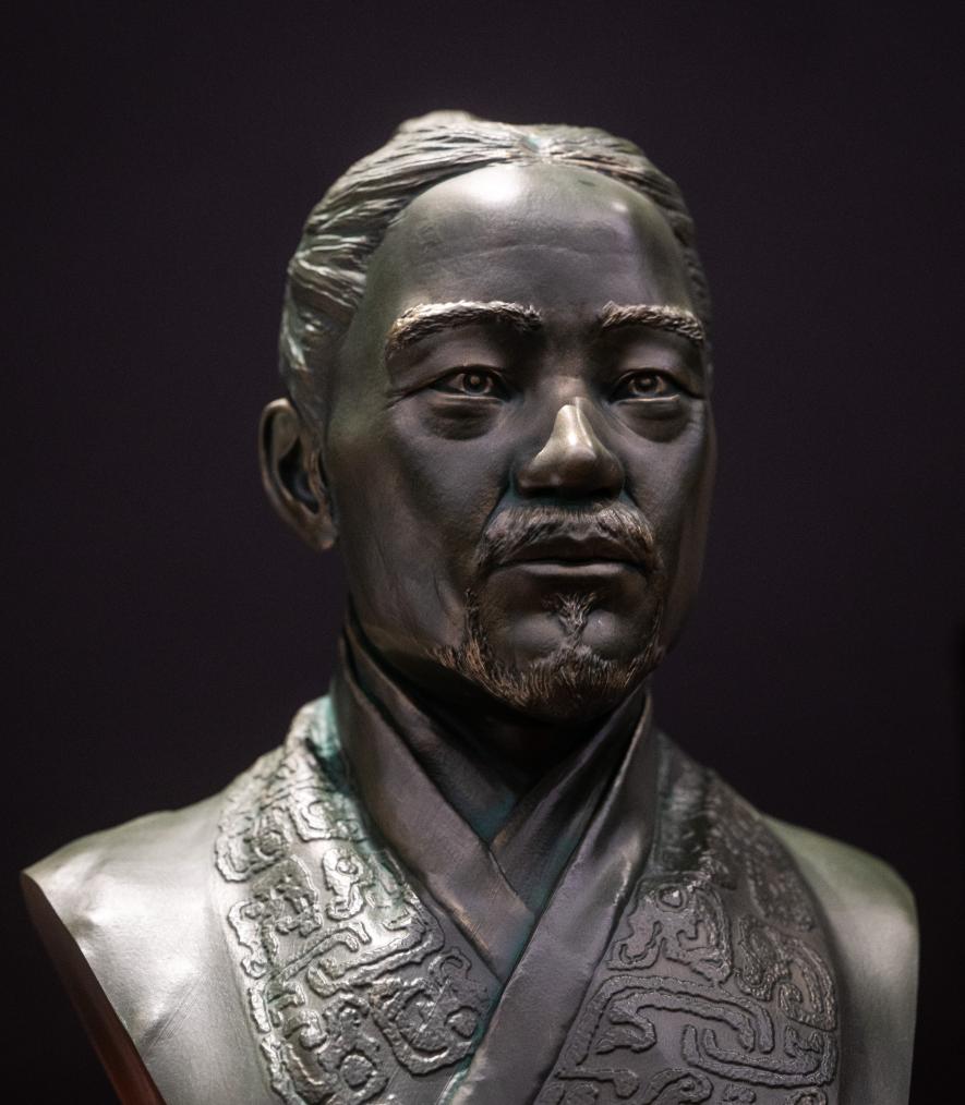 2024年3月25日拍摄的云梦睡虎地秦简主人“喜”的复原像。