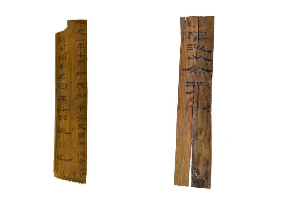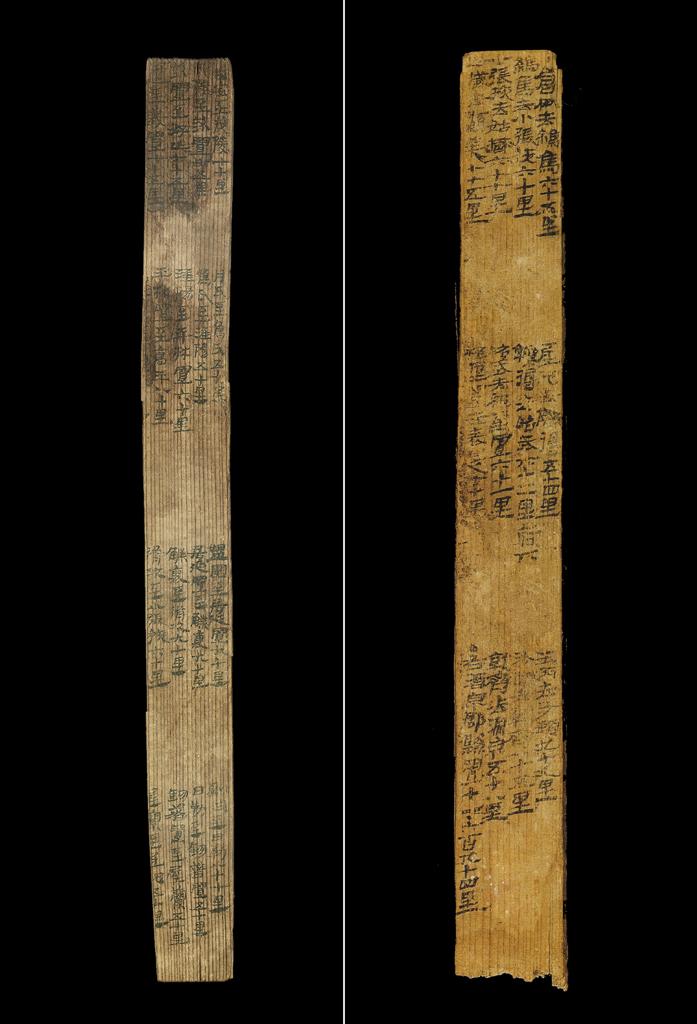 这是出土于今内蒙古自治区额济纳旗破城子遗址的《居延里程简》(左)和出土于甘肃省敦煌市悬泉置遗址的《悬泉里程简》(拼版照片,资料照片)。
