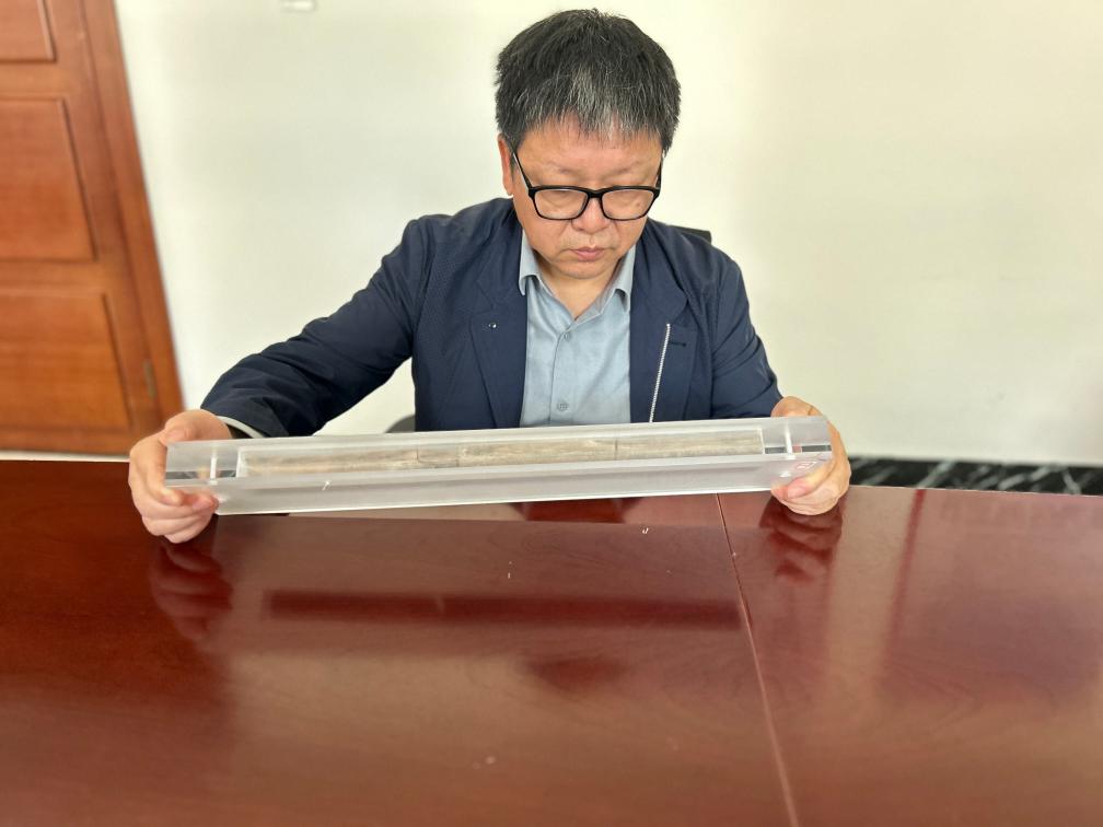 2024年4月12日,湖南省文物考古研究所研究员张春龙在研究简牍。