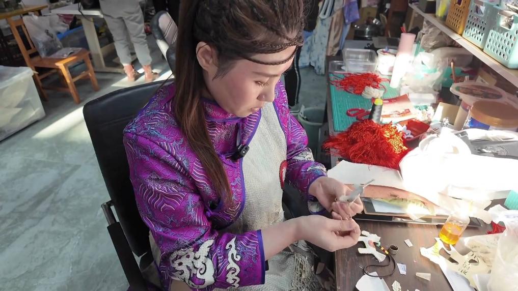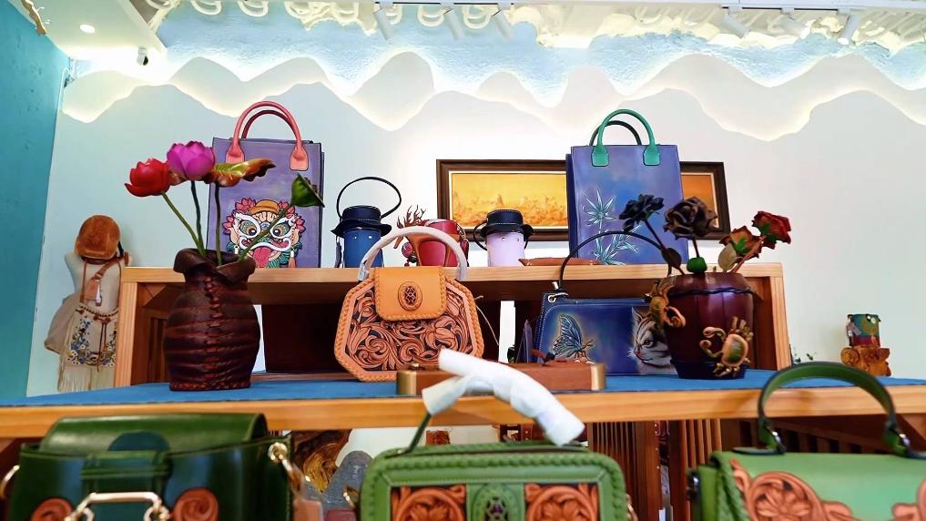 在黑龙江省佳木斯市一家非遗工坊内,一件件鱼皮工艺制品经过画稿、裁剪、拼接、缝制、粘贴等多道工序,由手工制作而成。