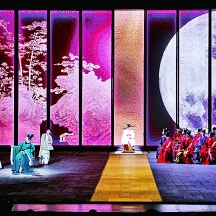 在《苏堤春晓》的舞台设计中,依照宋朝规制打造了30米青砖,铺满舞台,台口两侧则设置9米的宋代柱梁结构,另有17组9米高的半透明多媒体纱框幕布,展现着宋代山水画。随着剧情的发展,纱幕又通过流动变换的画面,将宋代的市井风情徐徐展开,使得全剧气质典雅古朴。