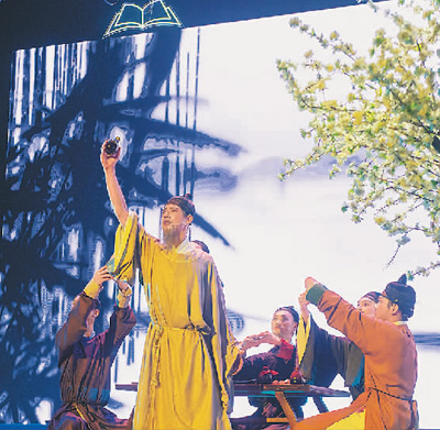 4月23日,在浙江省丽水市青田县举办的全民阅读主题活动中,来自丽水职业技术学院的学生,表演朗诵《将进酒》。新华社记者 江 汉摄
