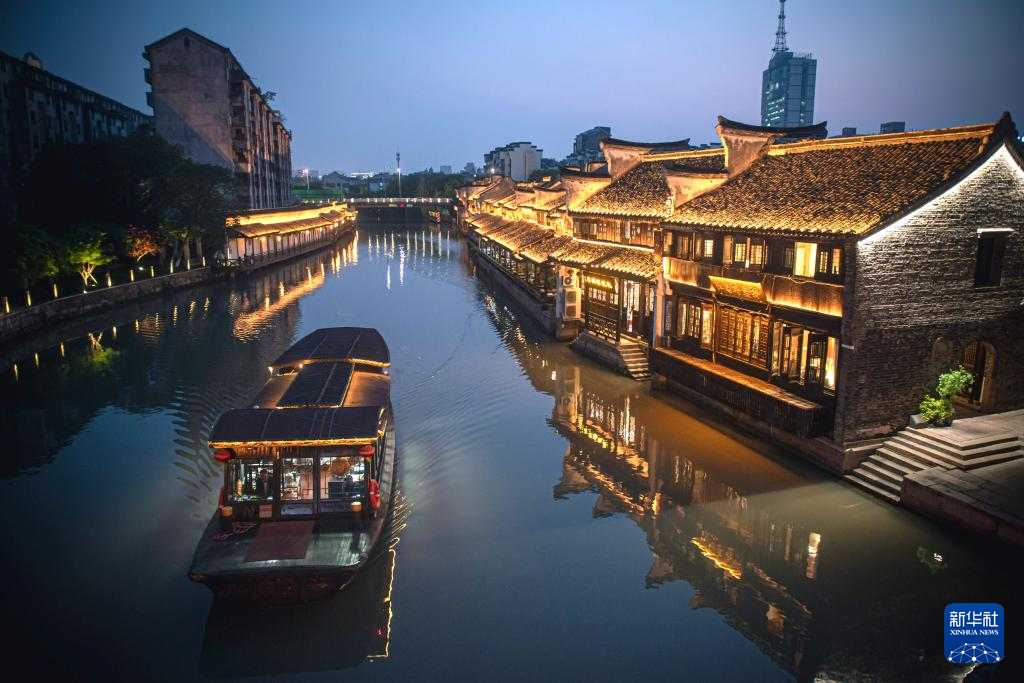 4月25日拍摄的月河历史街区夜景。