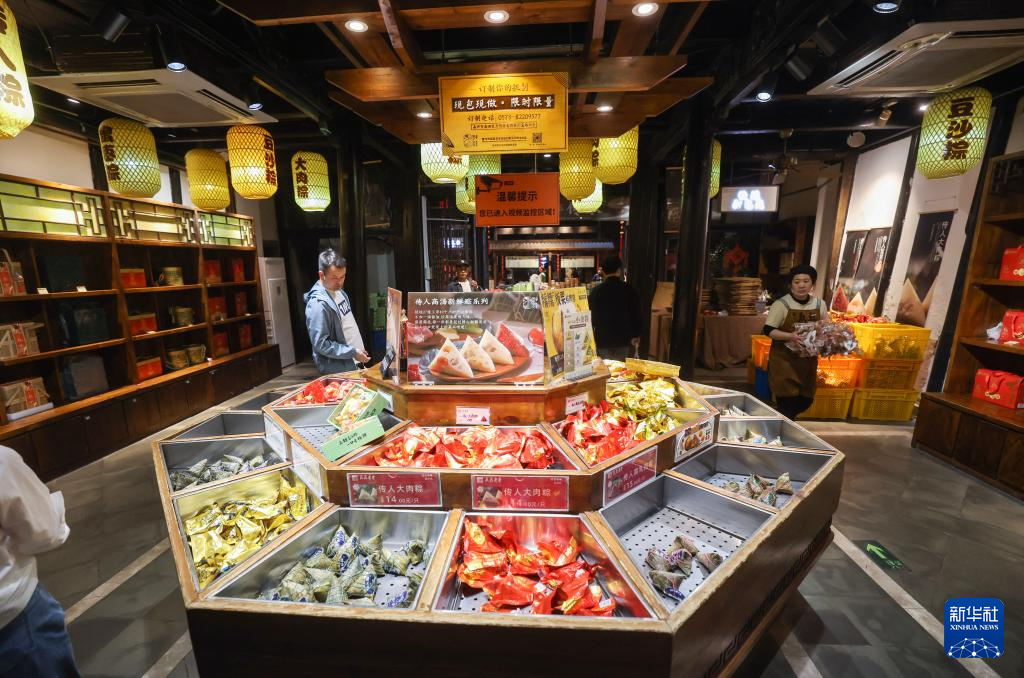 4月25日,游客在月河历史街区选购嘉兴粽子。