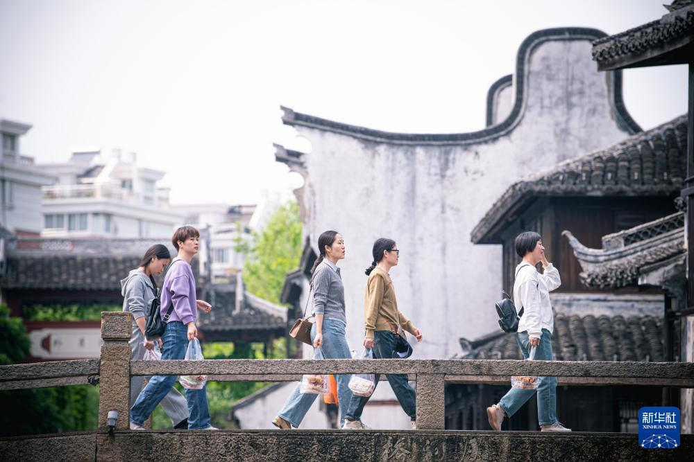 4月26日,游客在嘉兴市月河历史街区观光游玩。
